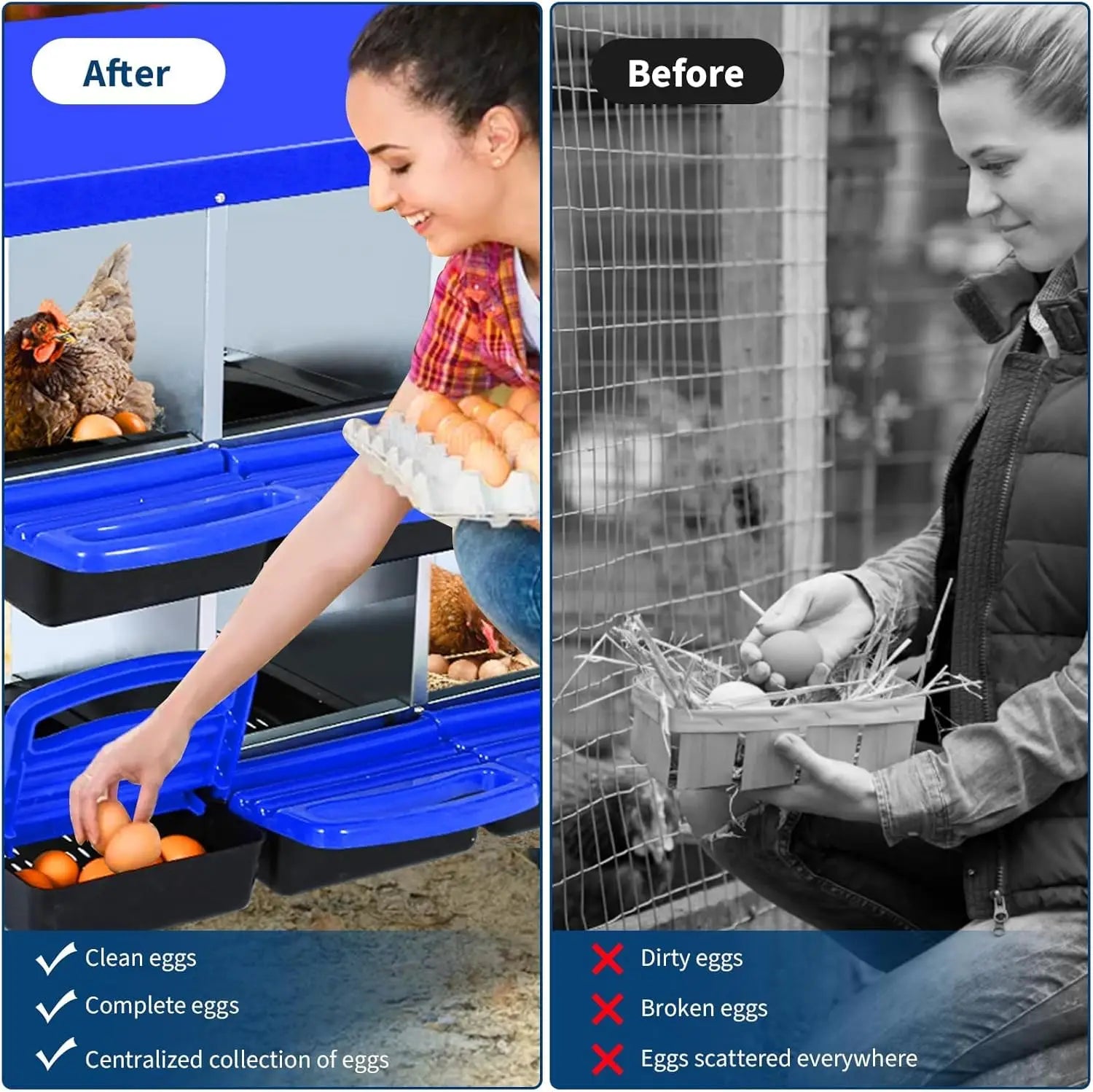- Optimized egg production: sloped interior guides every egg into a dedicated collection tray, reducing breakage and keeping the nest tidy.