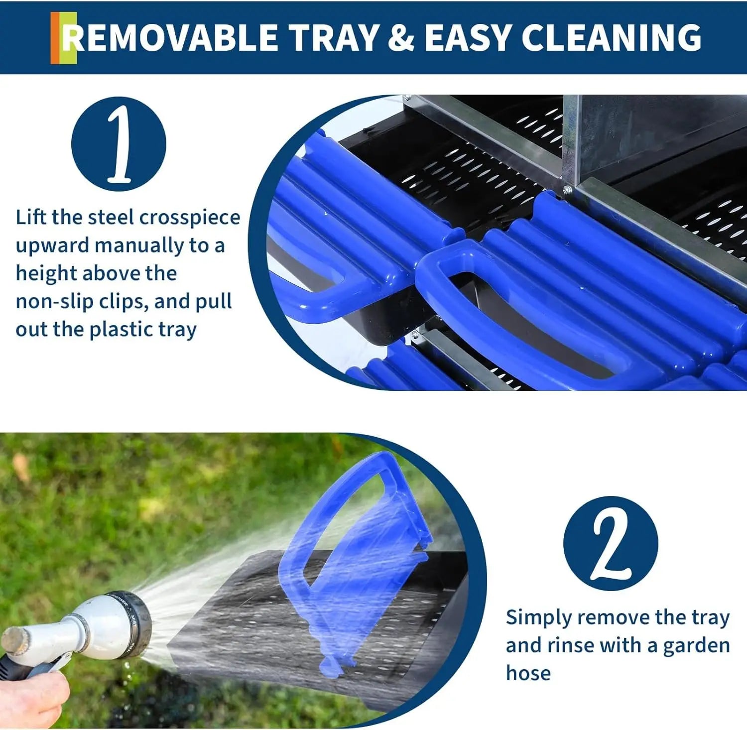 - Durable, easy-clean design: galvanized steel sides and roof provide durability, with a rust-resistant plastic tray that drains well and wipes clean for healthy coop hygiene.