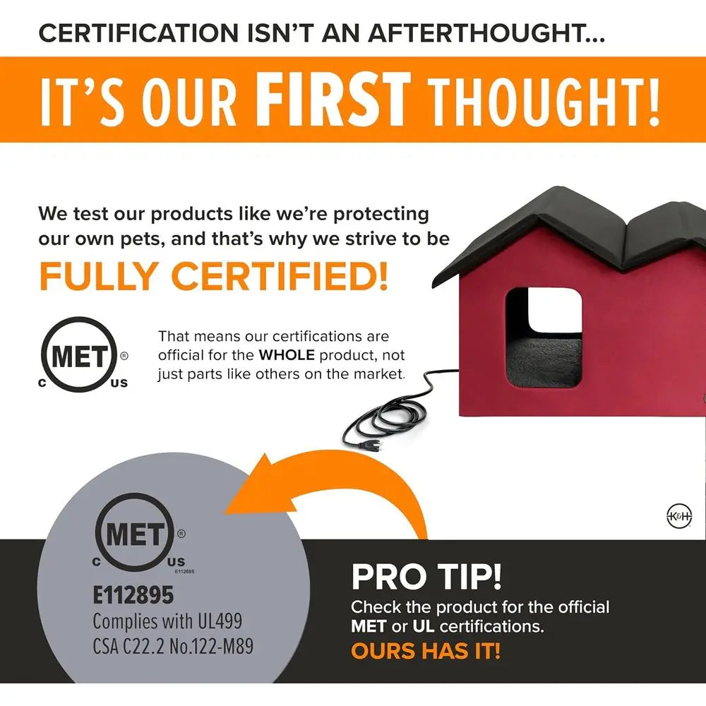 - Roomy, extra-wide design: 21.5" D x 26.5" W x 15.5" H fits two cats and includes a safety-listed removable heated bed to keep them warm, so you can keep two cats comfortable through winter.